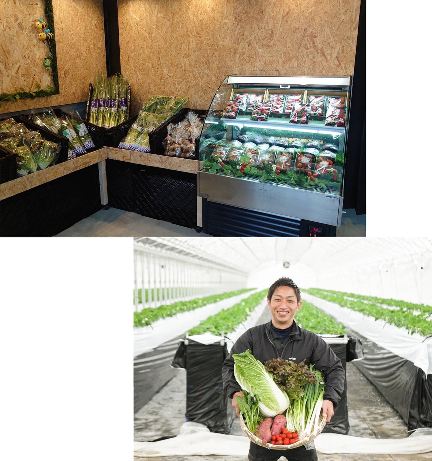 | 生産物 | 九条ネギ・イチゴ・万願寺・きゅうり・壬生菜・京芋・里芋・オクラ・サニーレタス グリーンレタス・水菜・ほうれん草・茄子・大根・レンコン・ブロッコリー 等 |